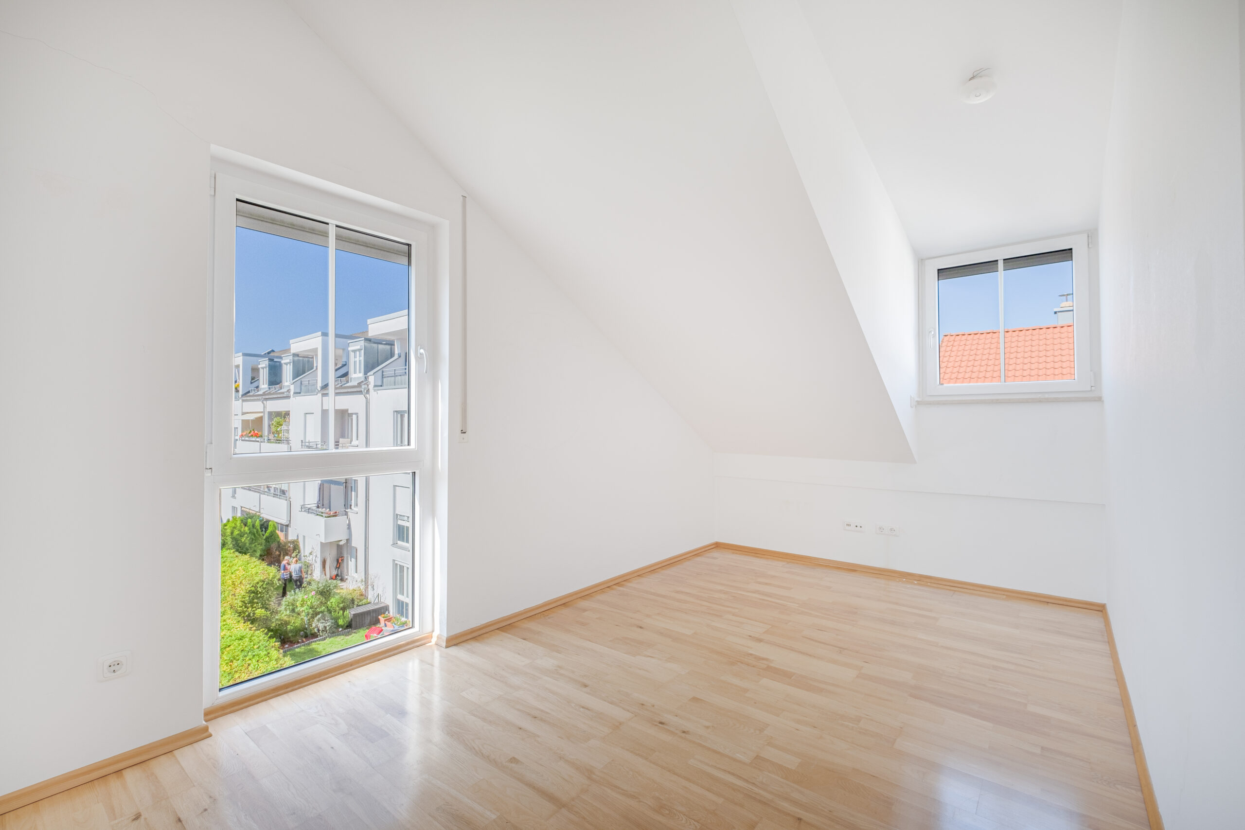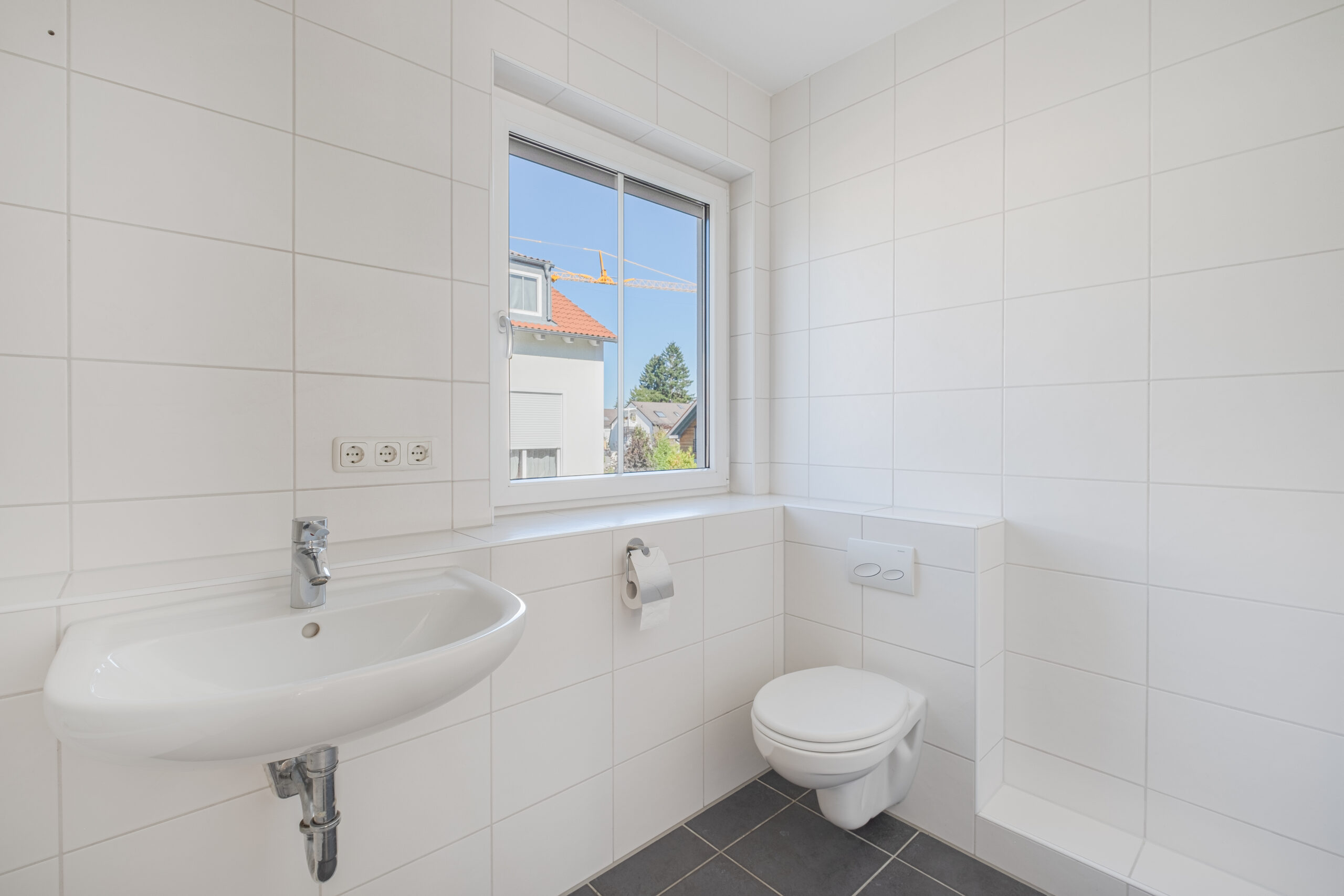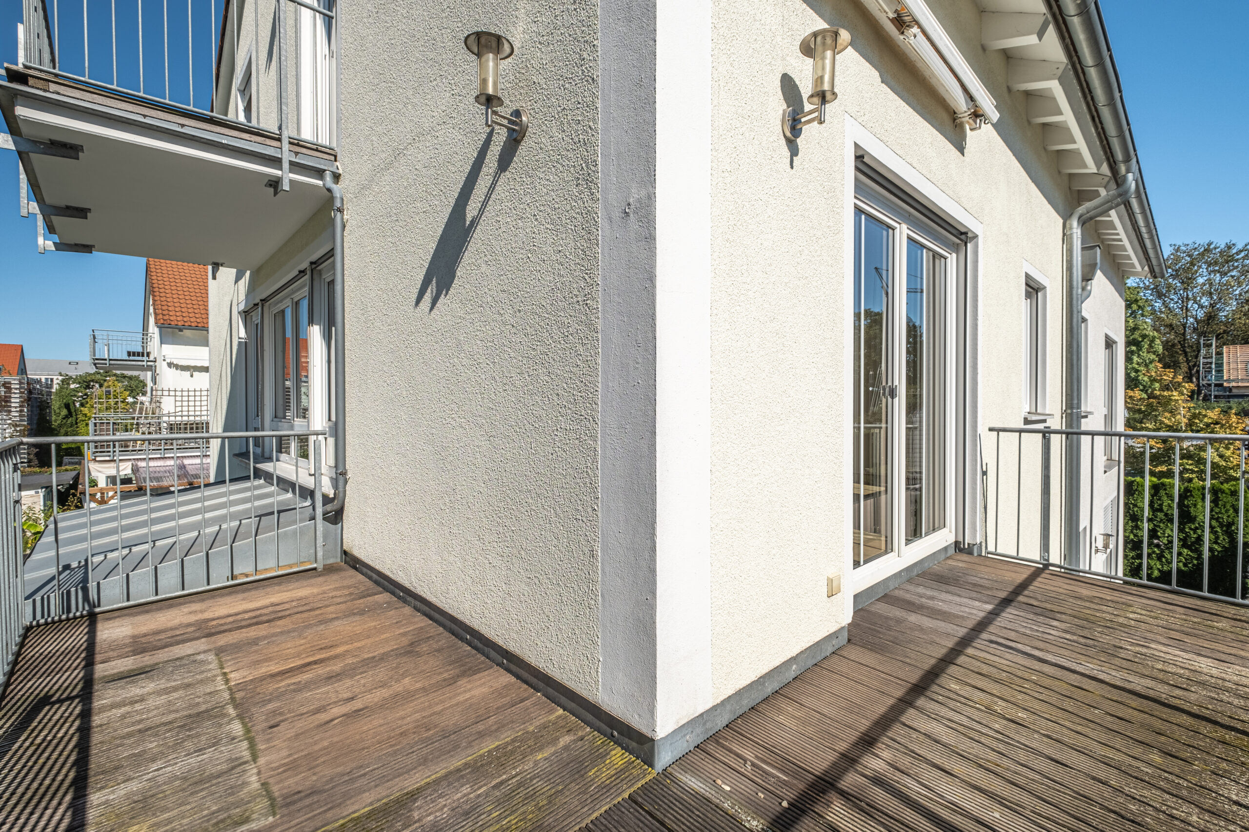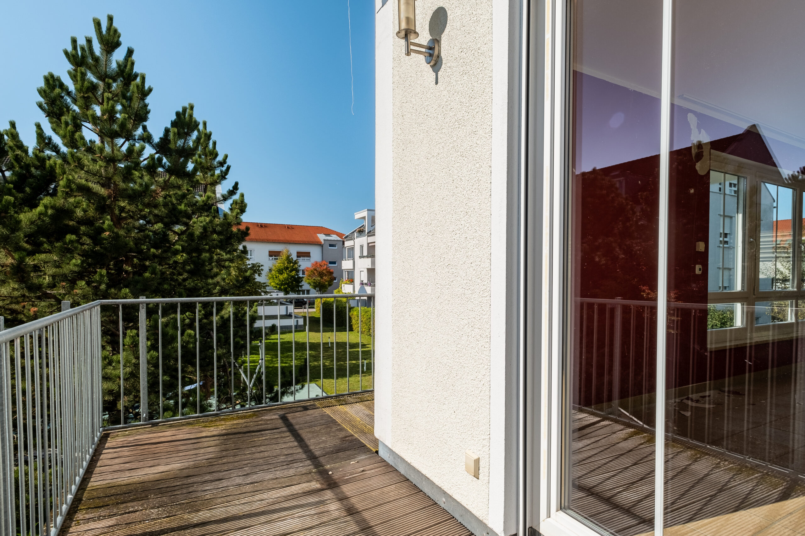 Im Dachgeschoss befindet sich ein weiteres Tageslicht Badezimmer mit Dusche. Zusätzlich bietet ein weiterer Balkon mehr Freifläche und einen Rückzugsort für die obere Etage.
