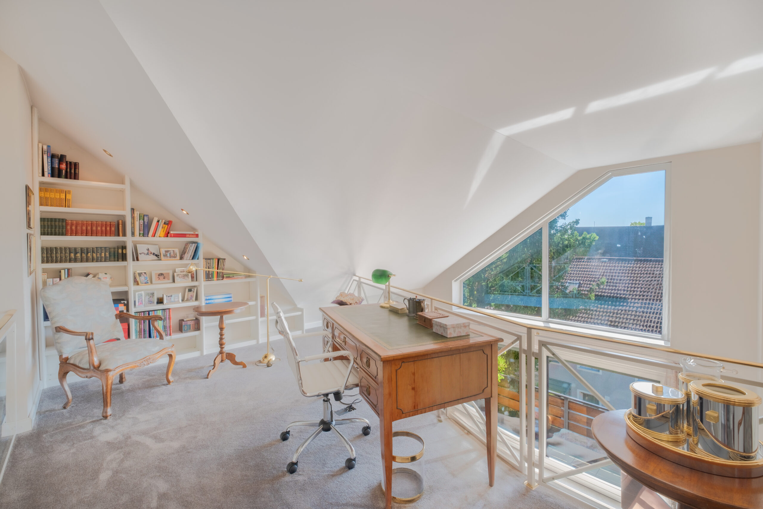 Im oberen Bereich der Maisonette befindet sich eine Art Einliegerwohnung, die zusätzlich ein weiteres Badezimmer mit Dusche, ein weiteres Zimmer sowie die Sauna umfasst.