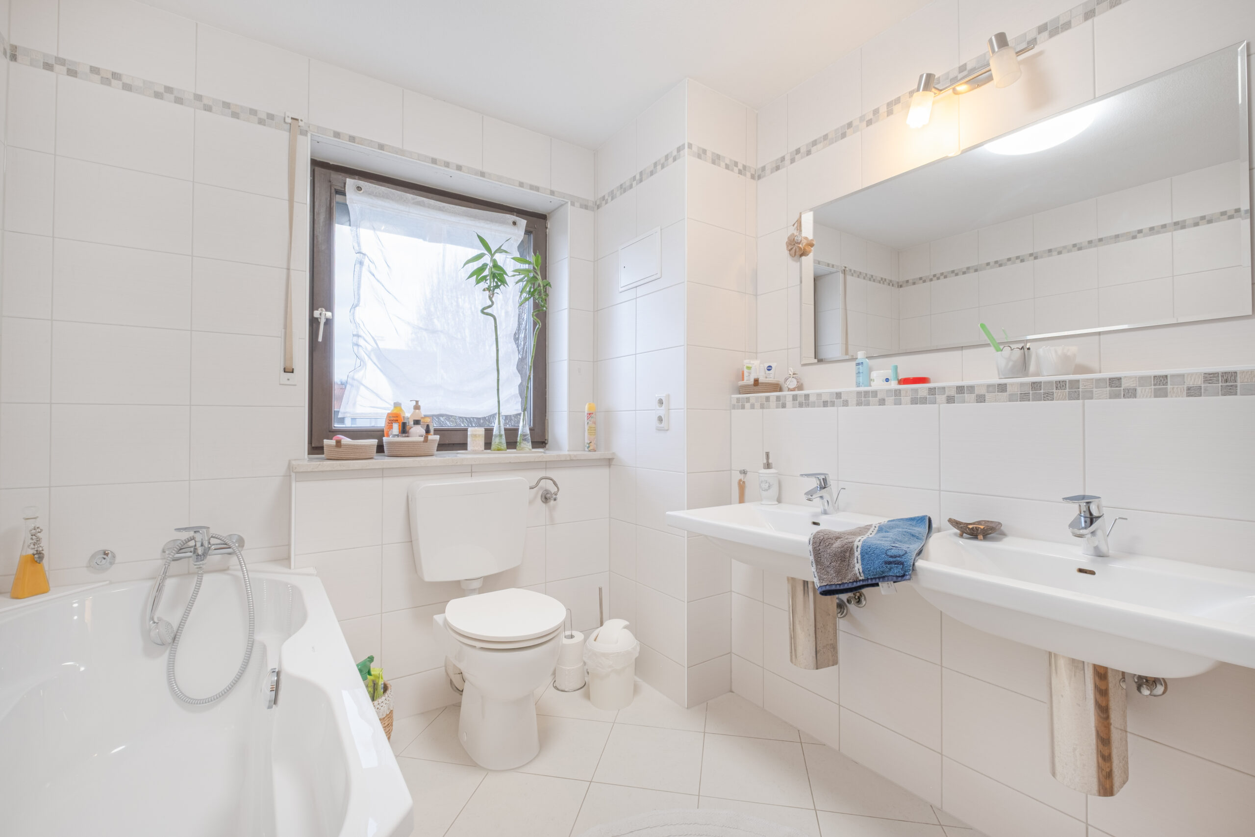 Elternschlafzimmer mit Balkon, zwei Kinderzimmer und ein modernes Tageslicht Bad mit Badewanne, Dusche und Doppelwaschbecken bieten Komfort für die ganze Familie.