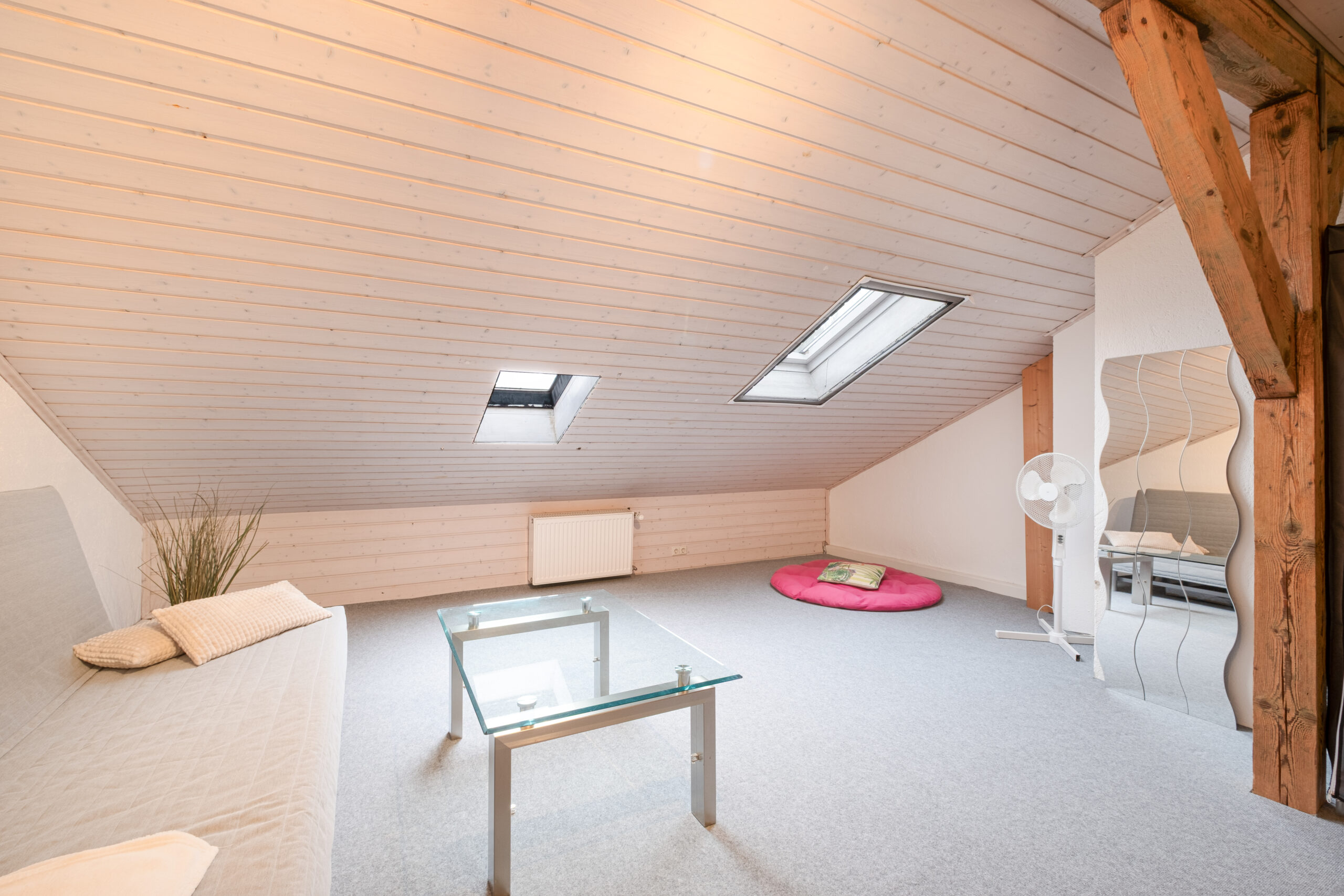 Zwei ausgebaute Zimmer im Dachgeschoss eignen sich ideal als Gästezimmer, Homeoffice oder Hobbyräume.