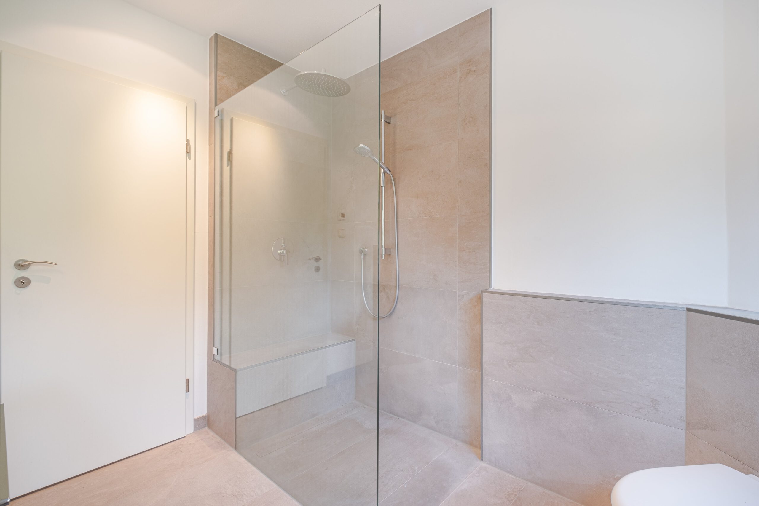 • Modernes Badezimmer mit begehbarer Walk in Regendusche